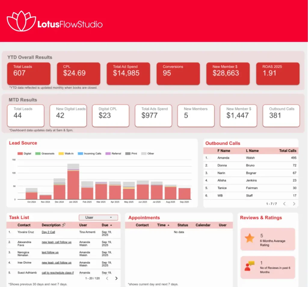 From chat and scheduling to reporting and analytics, all your tools work together — no more toggling between apps.